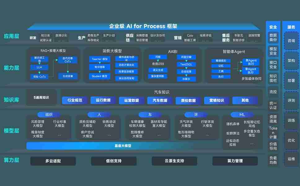 巅峰国际问学智车解决方案是一套基于AI技术的汽车行业智能化系统,,,覆盖从底层算力到顶层AI应用的全栈方案。。。方案由算力层、、、、模型层和应用层组成:算力层,,,,方案支持多种一体机配置,,具备云端灵活部署、、多云适配以及动态优化计算资源的能力;模型层,,,巅峰国际问学平台版提供了企业级AI应用一站式构建与管理平台,,,支持基于后训练强化技术的汽车企业专属模型的训练、、评测和运营;应用层,,巅峰国际问学DeepSeek版提供包括超级员工、、、、智能招采、、、智能营销、、、、智能客服、、、、AI for BI等一系列解决方案,,可助力汽车行业实现数字化转型,,,让管理更智能、、、响应更敏捷。。。。